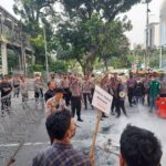 Sejumlah massa dari Aliansi Mahasiswa BEM PTNU Se-Nusantara kembali melakukan unjuk rasa, kali ini terkait Persoalan Perppu Cipta Kerja di depan Patung
