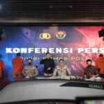 Ada pemandagan berbeda diacara konferensi pers pengungkapan kasus narkotika jaringan internasional yang digelar Divisi Humas Mabes Polri, Jumat (29/1/2021). Seorang wanita berbaju