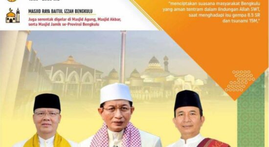 Bengkulu, Siberindo.co – Senin (29/8/2022) ba’da Magrib digelar doa bersama Imam Masjid Istiglal Jakarta, Prof Dr KH Nasaruddin Umar M.A, di Masjid