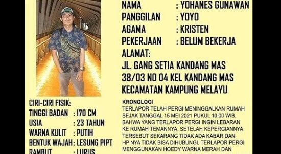 Bengkulu, Siberindo.co – Laporan orang hilang kembali diterima Polda Bengkulu. Yohanes Gunawan yang sering dipanggil Yoyo (23) warga Jalan Gang Setia Kandang