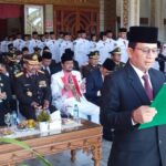 Bengkulu. Siberindo.co – Kepala Kantor Wilayah (Kakanwil) Kementerian Agama Provinsi Bengkulu Dr H Zahdi Taher M.HI membaca doa pada upacara HUT ke-77 RI. Doa