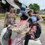 Bengkulu Utara – Aksi peduli akan keselamatan berlalulintas Kapolsek Padang Jaya IPTU Ratno, S.H., bersama anggota turun ke jalan raya membagikan helm