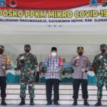 Panglima TNI Marsekal TNI Hadi Tjahjanto bersama Kapolri Jenderal Pol Listyo Sigit Prabowo mengunjungi Posko Pemberlakuan Pembatasan Kegiatan Masyarakat (PPKM) Mikro Covid-19