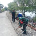 Anggota Koramil 0406/Cikampek Kodim 0604/Karawang monitoring dibantu 7 orang masyarakat mengerjakan pembangunan peningkatan dan pelebaran badan jalan 3 dalam kegiatan TNI Manunggal