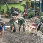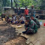 TNI Bersama Warga Laksanakan Pengerasan Jalan