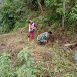 Babinsa Wonodoyo Anggota Koramil 07/Cepogo Kodim 0724/Boyolali Serka Samijo bersama warga Desa wonodoyo dan relawan melaksanakan penanaman pohon Suren di lereng pegunungan