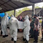 Babinsa Koramil 17 Wonosegoro Kodim 0724/Boyolali Sertu Darmana beserta anggota Bhabinkamtipmas Polsek Wonosegoro Brigadir Haryanto kawal pemakaman warga dengan prosedur protokol kesehatan
