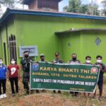 Koramil 1016-04/Tumbang Talaken Kodim 1016/Palangka Raya melaksanakan karya bakti pengecatan Mushola Darussalam di Jalan Negara RT 04 RW 01 Desa Tangki Dahuyan