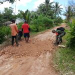 Babinsa Pinyuh Bersama Masyarakat Karya Bakti Perbaiki Jalan