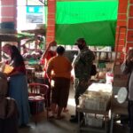 Koramil 1201-04/Sungai Kunyit bersama Polsek terus memberikan pemahaman kepada warga tentang pentingnya penerapan protokol kesehatan (Prokes) melalui sosialisasi di Pasar Desa Semudun,
