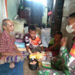 Komandan Koramil 1201-06/Menjalin Peltu Suparlan bersama Babinsa melaksanakan anjangsana dan memberikan bantuan kepada seorang warga lanjut usia (Lansia) di Kampung Leong, Dusun