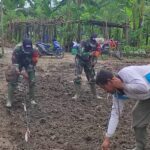 Semangati Petani Olah Lahan, Babinsa Kodim 1203/Ktp, Bantu Mencangkul