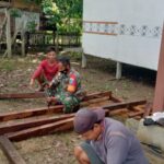 Menjalin Keakraban Babinsa Bantu Warga Bagun Rumah Di Desa Binaannya