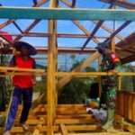 Terlihat Babinsa 1206-09/Jongkong Pengkadan Sertu Sumadi, Praka M.Zulfiqor bantu pengerjaan pembuatan Poskampling di Desa Mawan Kecamatan Pengkadan. Sabtu, (29/05/2021) Keamanan Ketertipan di