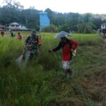 Babinsa Koramil 1206 – 17/Silat Hilir Bersama Warga Gotong Royong Bersihkan Lapangan Sepak Bola