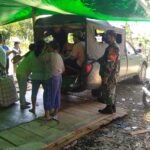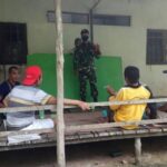 Guna mencegah penyebaran Covid-19 diwilayah Kabupaten Kapuas Hulu, anggota Koramil 04 /Semitau Kodim 1206 – 04/Putussibau, Serka Rahmad bersama dengan bhabinkamtibmas Semitau