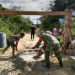 Sebagai wujud kepedulian TNI dalam meringankan dan mengatasi kesulitan masyarakat di sekelilingnya, Babinsa Koramil 1206-02/Semitau Koptu Frenky membantu pembangunan Posko Desa Semitau