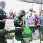 Inovasi Kreatif sebagai upaya percepatan penanganan dalam masa pandemi Covid-19, Koramil 04/Badau Kodim 1206/Putussibau, Bersama Muspika Kecamatan Badau Tabur Benih ikan sebanyak