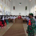 Untuk menciptakan rasa aman bagi masyarakat yang sedang merayakan Ekaristi Sakramen Krisma, Danramil 17/Seberuang Kodim 1206/PSB Peltu Benhard bersama satgas gugus tugas