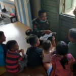 Anak-anak sekolah di Kampung Titin Kemantan selama masa pandemic Covid-19 belajar di rumah dibantu Babinsa Kopda Yohanes dengan bimbingan belajar. ‘’Ini dalam