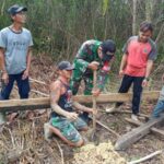 Kebersamaan Babinsa Bantu Bangun Rumah Warga