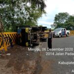 Diduga mengalami “rem blong”, satu unit kendaraan bermotor jenis mobil dump truk Nomor Polisi BA 9999 GU pada, Minggu (06/12/2020) melaju tak