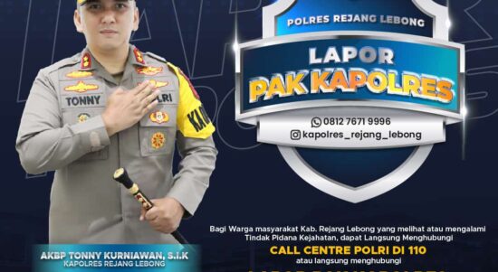 Bengkulu, Siberindo.co – Polres Rejang Lebong Polda Bengkulu melaunching logo “Lapor Pak Kapolres”, Selasa (5/7/2022). “Lapor Pak Kapolres” merupakan inovasi dari Kapolres