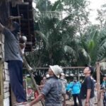 SUNGAI RUMBAI – Polsek Sungai Rumbai mengerahkan personel membantu warga yang kediamannya roboh tertimpa pohon. Personel bersama-sama warga, memperbaiki rumah milik Supardi (52),