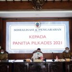 Pemerintah Kabupaten Pati memberikan pengarahan kepada para panitia pemilihan kepala desa (pilkades) gelombang 1 tahun 2021 di Pendopo Kabupaten Pati, Selasa (16/2).