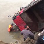 Diduga Rem Blong, Truk Muatan Pasir Nyemplung ke Sungai