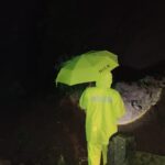 Antisipasi meluapnya air sungai, Kapolsek Warungasem Polres Batang AKP Herry Suprobo melakukan pengecekan debit air Kalikupang. Terlihat Kapolsek turun langsung memantau situasi