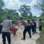 Bengkulu Utara – Kapolsek Enggano AKP Bayu Heri P SH.MH memimpin langsung giat penimbunan jalan yang rusak melaui Program Si Potal