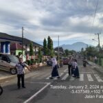 Bengkulu Utara – Berikan pelayanan prima, Anggota Satuan Lalu Lintas (Sat Lantas) Polres Bengkulu Utara melakukan pengaturan arus lalu lintas sekaligus membantu