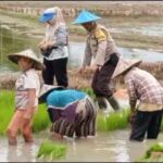 Membaur, Bhabinkamtibmas Turut Cabut Bibit Padi Warga Desa Muning Agung