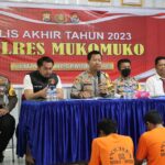 Mukomuko – Press release akhir tahun 2023 Polres Mukomuko yang dipimpin langsung Kapolres Mukomuko AKBP Nuswanto,S.H., S.I.K., M.H., dengan didampingi Kabagops, Kasat