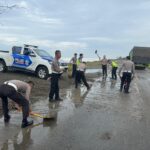 Pantai Abrasi, Sat Lantas Polres Mukomuko Gelar Aksi Bersih-Bersih Jalan Lintas Bengkulu-Padang