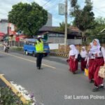 Rejang Lebong, Bengkulusibernews.co – Satlantas Polres Rejang Lebong Polda Bengkulu melakukan pengamanan serta pengaturan lalu lintas dengan membantu menyeberangkan masyarakat dan anak