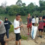 Personel Polsek Kotapadang dan Muda Mudi Bersihkan Sampah Sungai