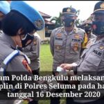 Bidang Profesi dan Pengamanan (Bid Propam) Kepolisian Daerah Bengkulu menggelar penegakan ketertiban dan kedisiplinan (Gaktiblin), Rabu (16/12/2020) di Polres Seluma yang dipimpin