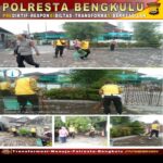 Kota Bengkulu – Dalam rangka kegiatan menyambut HUT Bhayangkara Ke-77 tahun 2023, Polresta Bengkulu Polsek jajaran melaksankan kegiatan bakti sosial dengan membersihkan