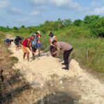 Bhabinkamtibmas Polsek Enggano Ikuti Gotong Royong Bersama Warga Untuk Perbaiki Jalan