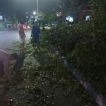 Polisi dan Warga Evakuasi Pohon Tumbang di Depan Masjid Jamik Babussalam