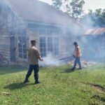 Bengkulu Utara – kegiatan Bhabinkamtibmas Polsek Ketahun Aipda Andi Marwanto bersama Kepala Desa dan perangkat Desa melaksanakan monitoring pelaksanaan penyemprotan fogging diDesa