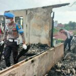 Bengkulu Utara – Kapolsek Ketahun pimpin gotong royong bersama Personil Polsek Ketahun Pengurus dan warga, bersihkan puing sisa kebakaran di Pasar KTM Giri