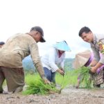 Membaur, Bhabinkamtibmas di Lebong Turut Menanam Padi di Sawah Petani