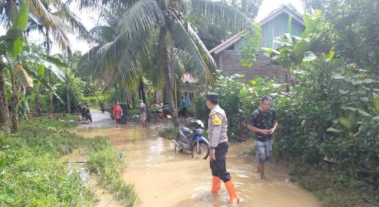 Bersama Komunitas Trail Kaur, Bhabinkamtibmas Bagikan Bantuan ke Warga Terdampak Banjir
