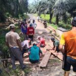 Personel Polsek Maje Gotong Royong Perbaiki Jembatan di Desa Sinarmulya
