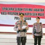 Kaur, Siberindo.co – Kapolres Kaur Polda Bengkulu AKBP Eko Budiman, memimpin serah terima jabatan (Sertijab) Kapolsek Maje dan Kasie Propam, Selasa (7/3/2023).