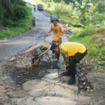 Prihatin Kondisi Jalan Rusak, Polsek Padang Jaya Bantu Warga Perbaiki Jalan