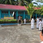 Mukomuko – Bhabinkamtibmas Polsek Penarik Raya Polres Mukomuko Polda Bbengkulu Aiptu Noor Sareh, menjadi pembina upacara di SND 07 Penarik, Senin (13/3/2023)